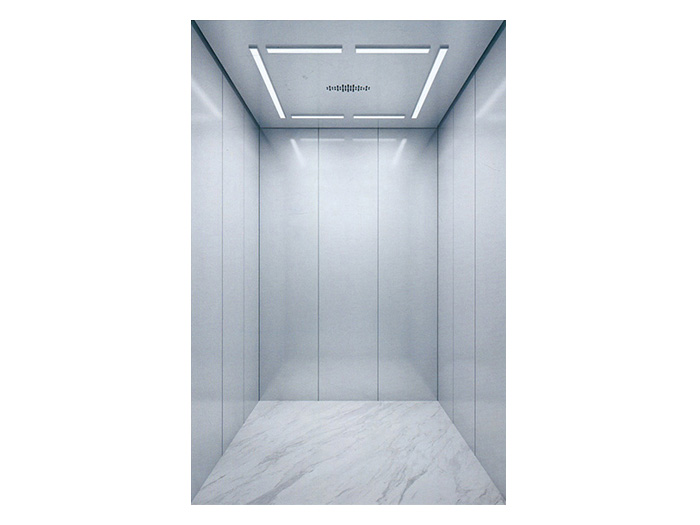 闪灰银喷涂轿厢吊顶:闪灰银喷涂钢板配线条灯(GR-DTA34)后壁:闪灰银喷涂钢板侧壁:闪灰银喷涂钢板前壁:闪灰银喷涂钢板地板:PVC(GR-B36)